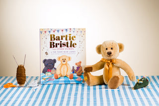 Merrythought recently had the pleasure of welcoming a rather unique collectable teddy bear into our family… Bartie Bristle! This much-loved character was originally created by renowned teddy bear restorers Julie Tatchell and Amanda Middleditch, who together are known as ‘The Teddy Bear Ladies,’ and perhaps most notably as stars of the BBC’s The Repair Shop. He is also the lead character in their new book, ‘Bartie Bristle and Other Stories: Tales from The Teddy Bear Ladies'. As part of our collection, Bartie promises to bring loyal companionship and endless adventures!