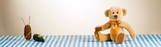 Whilst gaining a huge following for expertly bringing people’s treasured childhood bears and soft toys back to life, alongside their specialist repair work Julie also designed and Amanda created their very own trademark bear. First imagined by Julie, who had sketched the original logo for their restoration business – Bear It In Mind – which featured a little teddy bear character they initially called ‘Logo’, the pair went in search of a more worthy name for this loveable fellow. Aided by a community of bear lovers, he was re-named Bartie Bristle! Of course, his story did not end there as Amanda, a talented teddy bear artist, was able to bring Julie’s drawing to life and create a dear little bear with a magical thread of kindness in each stitch! We were honoured that Julie and Amanda chose Merrythought to exclusively produce their Bartie Bristle bear in our historic British factory, and we have worked closely with them to bring you this charming character.