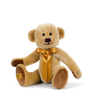 Following their original design and patterns, Bartie is hand-made from short-pile sandy-gold mohair plush and soft toffee-coloured velvet, and features embroidered stitch detailing, along with a hand-sewn nose and smile that perfectly capture his unique charm and cheerful expression.