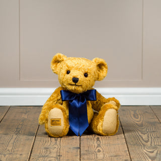 Crafted from wonderfully soft, rich golden mohair, Oxford's rotund shape and characterful dark brown eyes are guaranteed to warm hearts across the generations. His colours coordinate perfectly with dark sand wool felt paws.