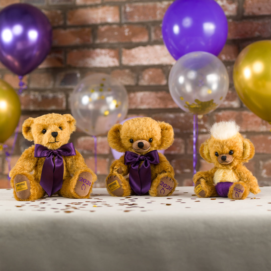 Designed as mementos of the year, Merrythought’s trio of 2026 Year Bears include a beautiful jointed Teddy Bear, Cheeky Bear and Punkie Bear.